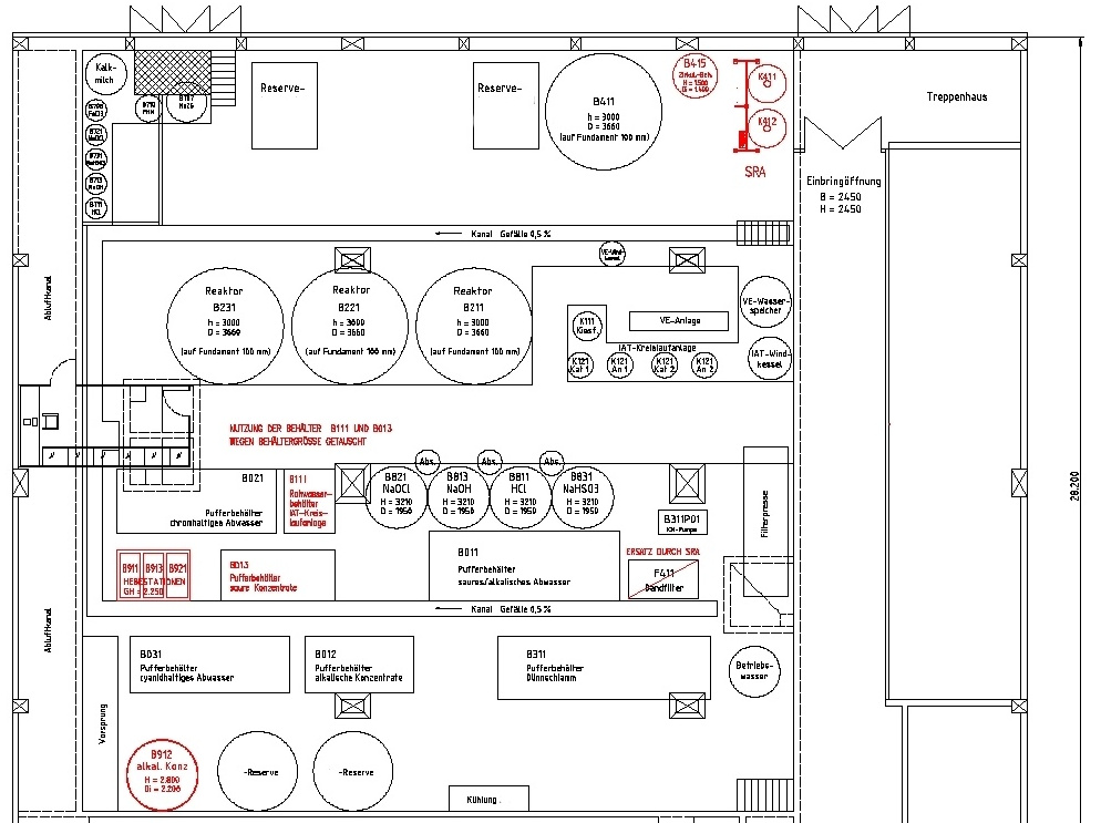 7 Galvanoanlagen: Umzug an 1 Standort. Die Anlagen sollten verfahrenstechnisch optimeirt wieder aufgebaut werden